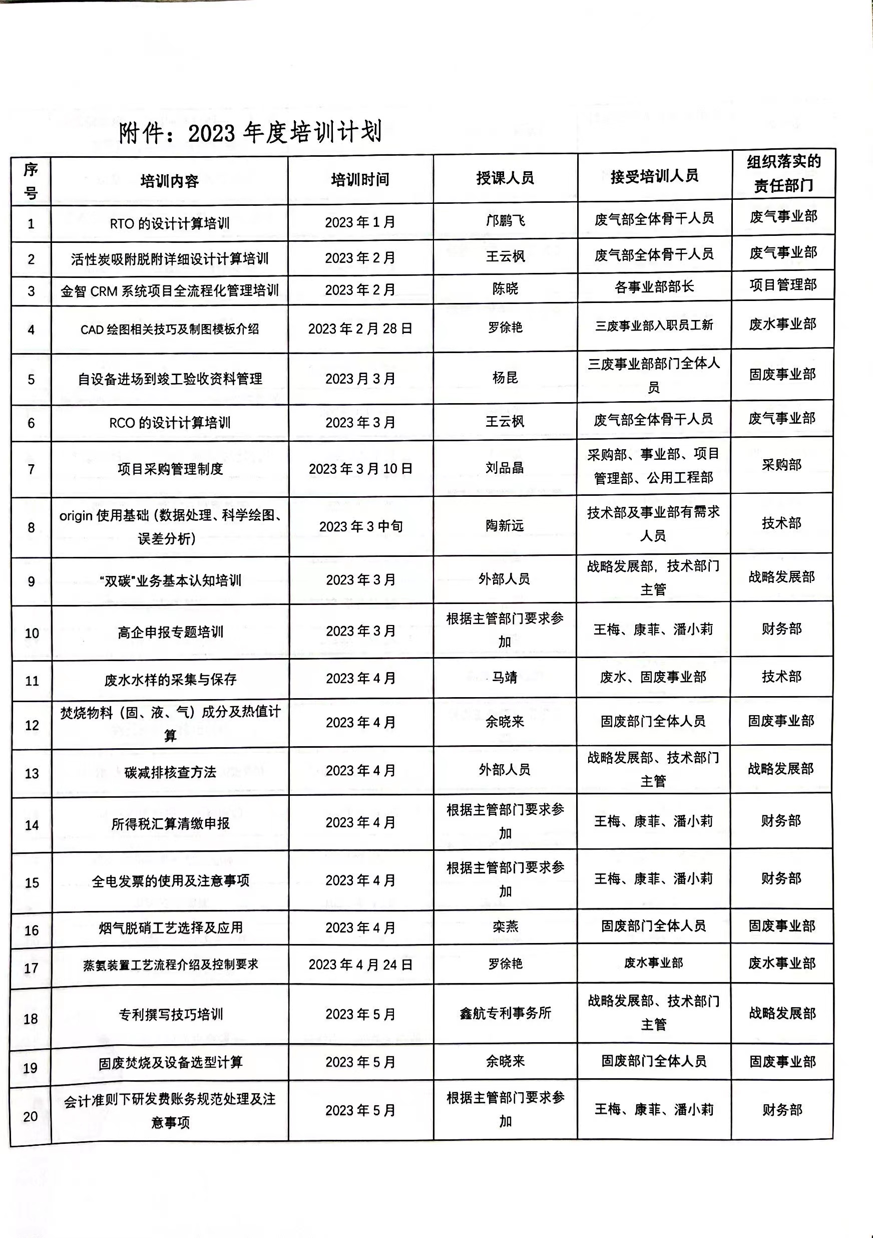 随着研究院各产业板块的不断升级,研究院队伍也在发展壮大,为了增强我院人才队伍建设,保证企业可持续性发展,根据公司2023年的发展目标,为提高整体人员素质,我院于2023年度制定各项培训计划,培训内容包括新员工的岗前培训、业务技能培训、专业知识培训、消防知识等,拟定培训80余场次,参与人员需达百人,覆盖公司全体员工,全面启动培训工程,创建一支高素质,高技能的员工队伍,做好年度员工的培训工作。